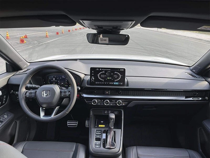 Vô lăng cũng có thiết kế tương tự Civic với cấu trúc 3 chấu thanh mảnh. Trong khi đồng hồ lái được nâng cấp kỹ thuật số với màn hình TFT 10,2 inch. Kem với đó là lấy chuyển số được tích hợp trên vô lăng ở cả 4 phiên bản (G, L, L AWD & e:HEV RS), riêng bản hybrid (e:HEV RS) còn được tihc1 hợp thêm lẫy giảm tốc độ trên vô lăng.